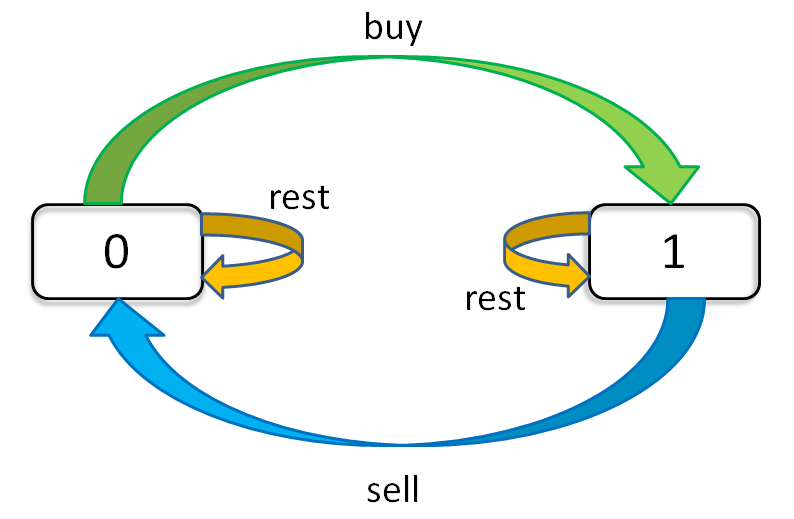 use buy, sell, rest to represent these three choices. But the problem is that