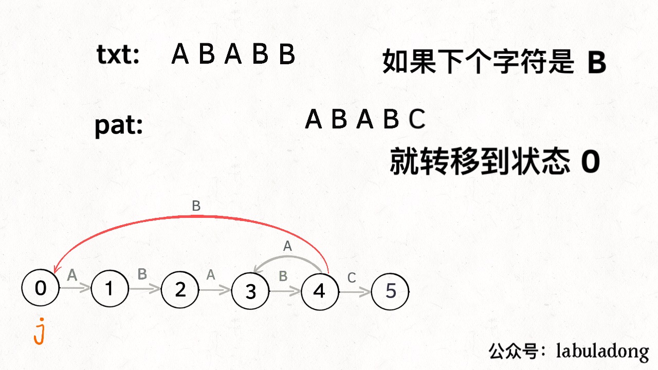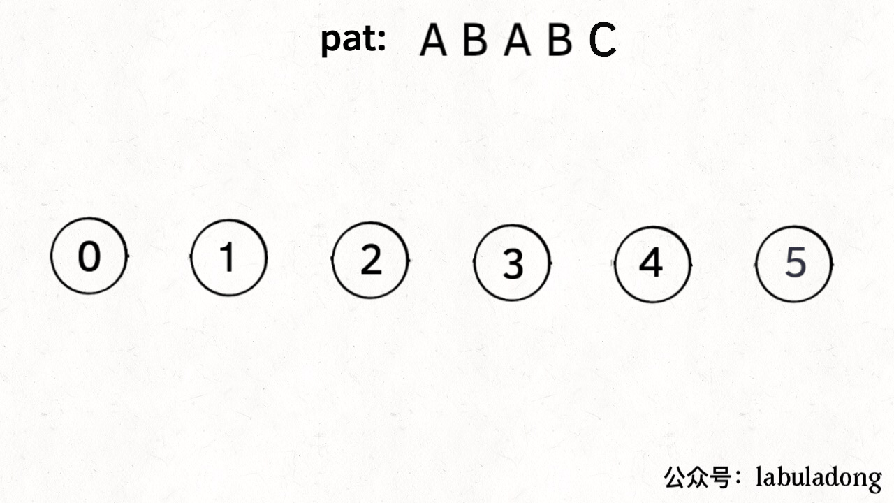 state transition. For example when pat = “ABABC”: